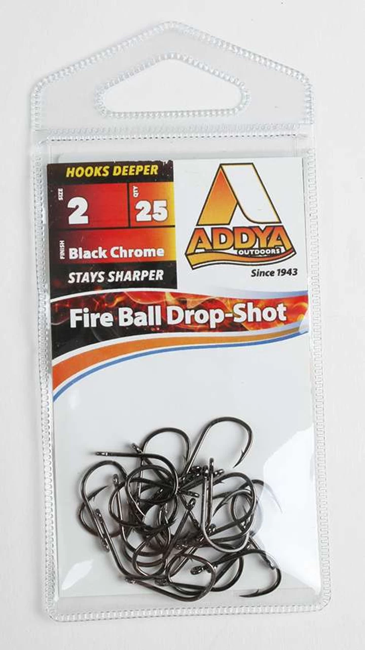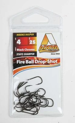 The Addya Fireball Drop Shot Hook is designed for both saltwater and freshwater fishing applications. It’s an all purpose live bait hook. The point on this hook remains sharp over multiple uses. This hook is made from the highest quality carbon steel.