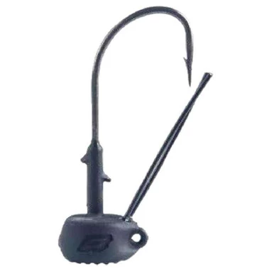 Designed specifically for ned rigging, BKK Silent Chaser-Draggin’ NED Weedless Jigheads are detail packed in every way. The jighead hooks themselves use a O’Shaughnessy style bend for maximum strength and are finished with BBK’s signature super slick coating for enhanced penetration. A recessed eye reduces snags and protects the knot from rock and other hard surfaces. The bait keeper allows for easy attachment and holding of elastomeric and standard soft bait formulas. Each head has slight ribbing on the face to provide for extra sensitivity along with size and weight specifications are embossed for easier selection.