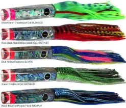 | Color | Dolphin BLY/GCD, BK-PUF Black/Purple Blue Fleck, Glow/Green Chartreuse Dot GLO/GCD, Red Black Tiger/Yellow Black Tiger RBT/YBT, Blue Yellow/Rainbow BLY/RA, Green Dot/Black Dot GRD/BKD, BBD-PUF Black Blue Dot/Purple Blue Fleck, Black Dot/Rainbow BKD/RA, Black Dot/Yellow Black Tiger BKD/YBT, Oceanic Blue/Blue Pink Tiger OB/BPT, Petro/Orange Dot PET/ORD, Purple/Black Dot PU/BKD, Pink Tiger/White PKT/WH, Purple Blue Dot/White Black Dot PBD/WBD, Blue Foil/White BL/WH, Yellowfin/Silver Gold Black YFT/SGB, Blue-Pink Tiger/Silver Black Tiger BPT/SBT, Green Orange Tiger/Orange Yellow Tiger GOT/OYT, Mackerel/Pink MAC/PK, Brown Gold Orange/Gold Dot BGO/GDD, PUF-PBD Purple Blue Fleck/Purple Blue Dot |
