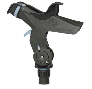 The RH5710 Rod Holder design is dedicated to top mounted bait casting rod/reel combinations. The reel stabilizer self adjusts to the particular rod/reel combination. The rod holder can be horizontally rotated in 22.5 degree increments in the mount and the rapid adjust trigger allows four vertical fishing positions (0, 25, 50, and 75 degrees). When a fish strikes, the RH5710 can be quickly rotated to the vertical position with the simple activation of the trigger. The vertical position makes it easy to remove the loaded rod from the holder. The vertical position also acts as a rod storage location while idle or running. A simple secure rotary rod lock is included. The RH5710 is compatible with the Burnewiin GM400 and GM 600 mounts.