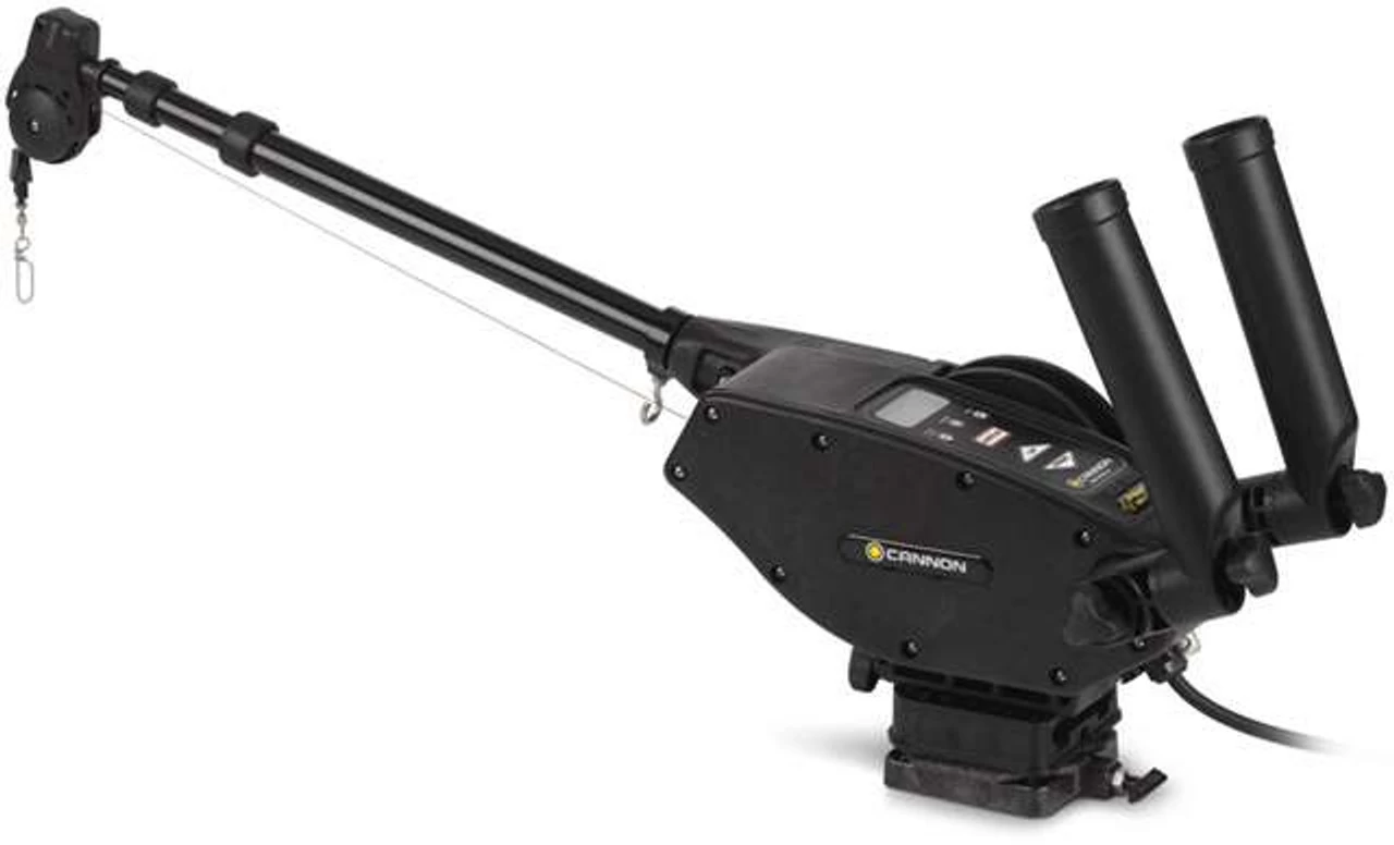 The Cannon Digi-Troll 5 Electric Downrigger features keypad controls with an integrated LCD screen, the fastest retrieval rate on the market (250 feet per minute) and a Short-Stop feature that protects the boat from swinging weight. The Digi-Troll 5 includes mounting base, low-profile swivel base, and a telescopic stainless steel boom that extends from 24″ to 53″.