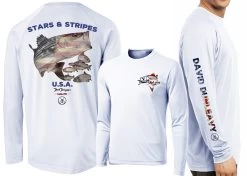 David Dunleavy Stars and Stripes long sleeve shirts feature one color design and help protect you from the harsh elements of the sun. They feature David Dunleavy’s American Flag bass design on the back with smaller version on the front.