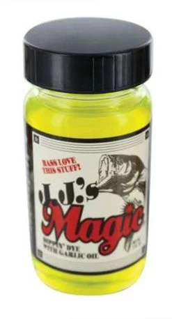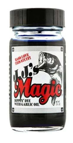 JJ’s Magic Dippin Dye is made to add additional color to your soft plastic baits. It is quick and easy to apply. It penetrates fast and provides a fish attracting garlic scent.