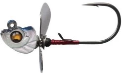 The Megabass Okashira Screwhead takes the exquisite design of the Okashira Jig Head and adds an asymmetrical propeller to the mix for an attractive flash and subtle vibration. With finely tuned bend angles, one blade of the propeller is larger than the other, which generates a unique pulsating vibration that bass can sense from a distance. The Okashira Screwhead supercharges your favorite soft plastic swimbait by not only adding a tantalizing display of flash and vibration, but also perfects the action of swimbaits with its hydrodynamic design that channels water under the chin and around the body. The head design improves range-keeping and increases horizontal stability. The Okashira Screwheads are built around a rigid BKK Super Slide hook that provides superior penetration, and are fitted with a hand tied bait keeper that offers a secure hold without tearing your soft plastics.