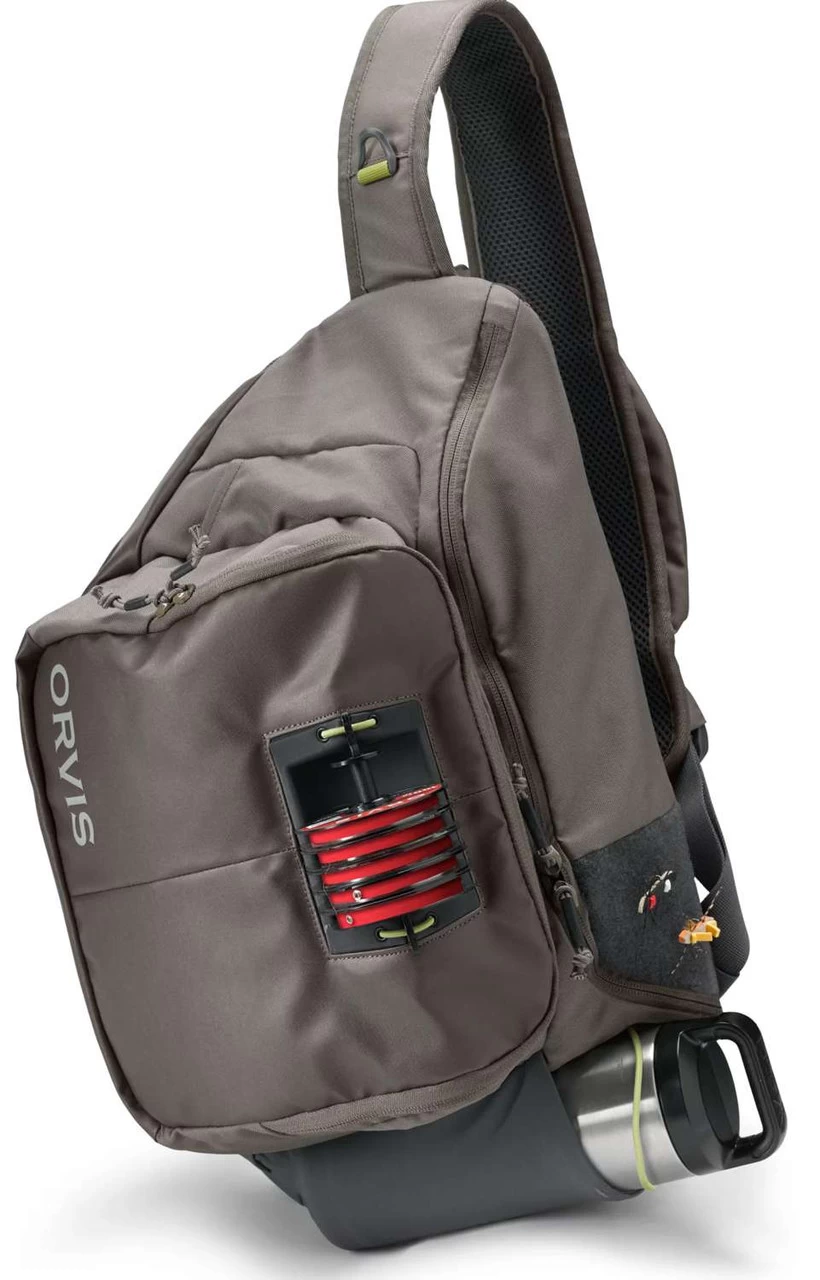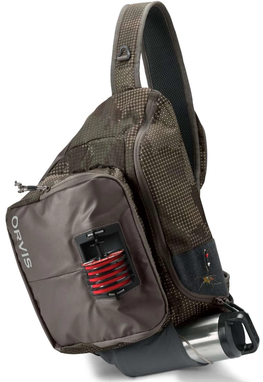 The Orvis Guide Sling Pack gives you tons of cargo space in a sleek design that stays out of your way. Featuring 18L of capacity, this pack is perfect for packing all your necessities in an easy to access and organized manner. A Tippet Whippet receded docking station comes with a tippet bar that allows hassle-free access to as many as 6 spools. This Orvis pack has integrated net storage between the pack and your body for easy access when it’s time to land that huge fish. The roomy main compartment boasts a zippered interior pocket with key fob and stretch mesh pockets for organizing your gear. This fishing pack has a smaller zippered pocket that has its own zip close internal pocket and organization enhancing drop pockets for small essentials. An integrated water bottle holder secures your hydration. The shoulder strap features a zip close pocket with a concealed forceps stash, zinger docking station, fly patch, and rear D ring. An adjustable sternum strap ensures all day comfort, while a ridged back allows ample airflow. Pass through port offers easy access to your nippers. Left shoulder design frees up casting arm and shoulder. The Orvis Guide Sling Pack is made from recycled ECO Cordura 600 denier polyester with a thermoplastic polyurethane (TPU) finish.