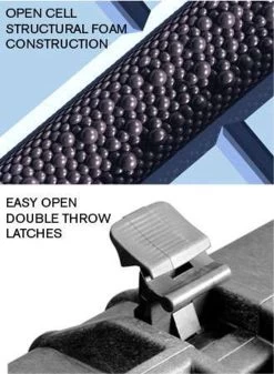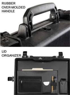 - Lid organizer, shock absorbing tray, and padded shoulder strap.