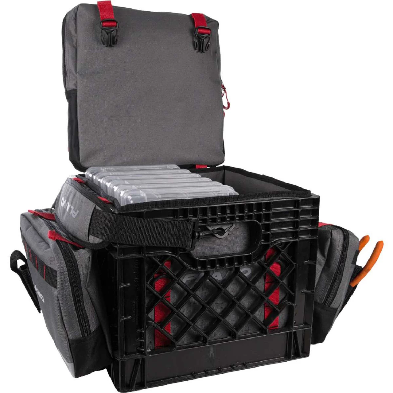The Plano Kayak Series Soft Crate Bag is designed to work in tandem with a commonly used storage system that many kayak anglers are already using. This soft sided tackle bag system fits securely inside of a milk crate, offering a wide array of customizable storage options on the deck of your kayak. This system also works just as effectively free-standing without the milk crate. Built with a paneled design system, the main compartment has two sections that can fit numerous utility boxes and other large items, while the three attached panels serve as storage for items that need to be more readily accessible. The top panel also serves as a protective lid for the main compartment’s contents while the side panels fold inward to serve as sturdy carrying handles. Each side panel is fitted with a rugged hook-and-loop tool holder for storing pliers, knives, hook removers, and other accessories. Each of the three panels is removable with a series of buckles and straps offering anglers the ability customize their storage system.