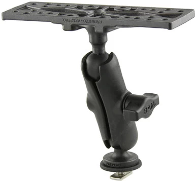 The RAP-B-111B-354-TRA1U consists of a Track Ballâ„¢ base, composite double socket arm and 6.25″ x 2″ rectangle plate. The 6.25″ x 2″ rectangle plate contains different combinations of pre-drilled holes which will match up to many electronic devices and mounts, including Marine GPS, CB Radios, Ham Radios, Gimbal Brackets and more. The Track Ballâ„¢ base can connect to virtually any track system including the RAM Tough-Trackâ„¢