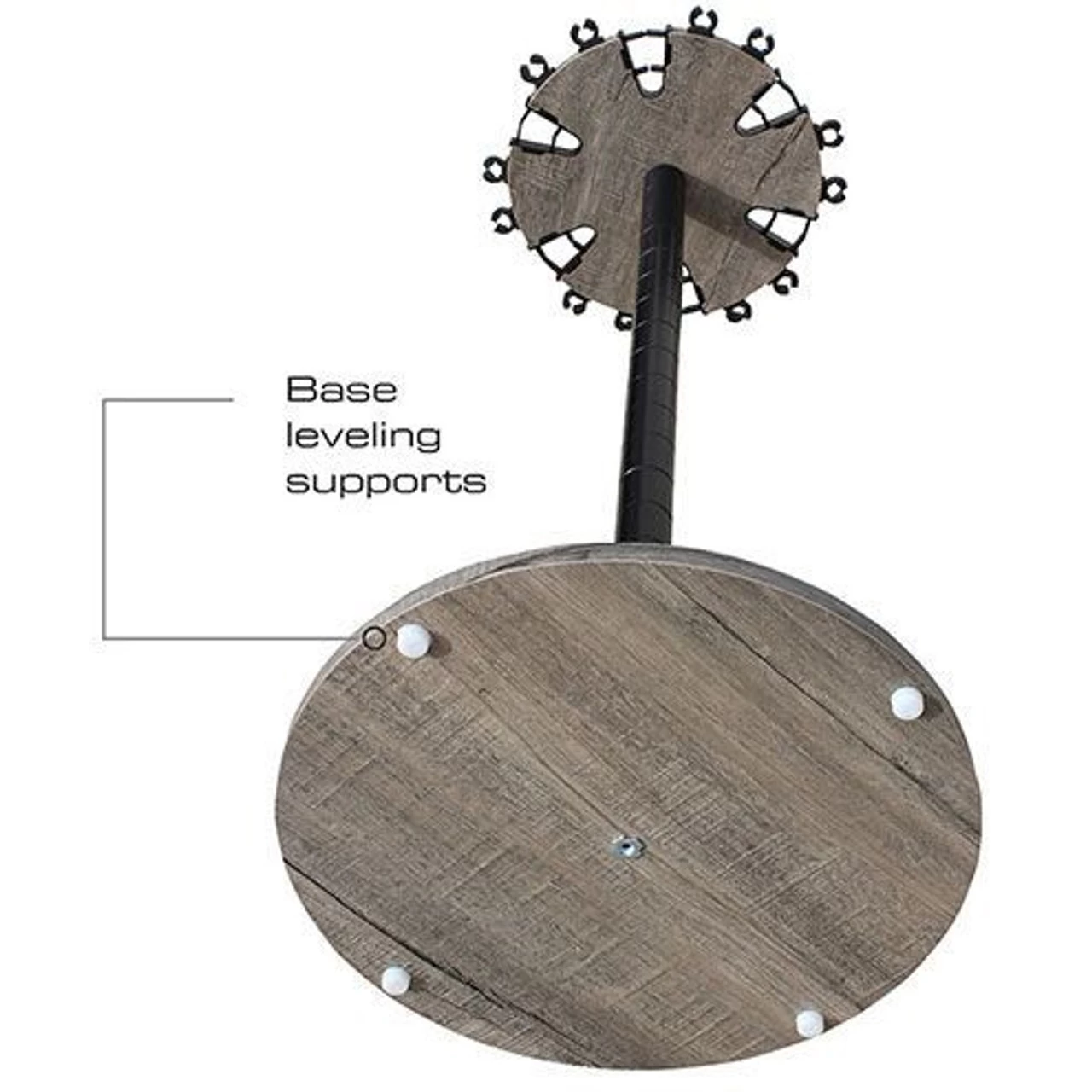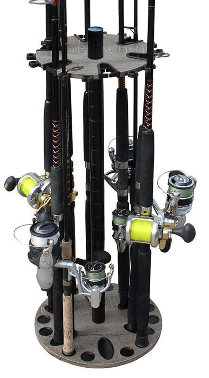 The Rush Creek Creations 24 Round Fishing Rod Storage Floor Rack comes with a 6” extension post. Most standard floor racks are 30” in overall height and are made for freshwater rod and reel combos. By adding the 6” extension post along with the dual rod clip technology, you can store those larger saltwater rods vertically on this fishing rod rack. The caps on the base plate capture any water from the rod or reels, the center post is 38mm (1.5”) in diameter and has been powder coated for durability and is scratch resistant.