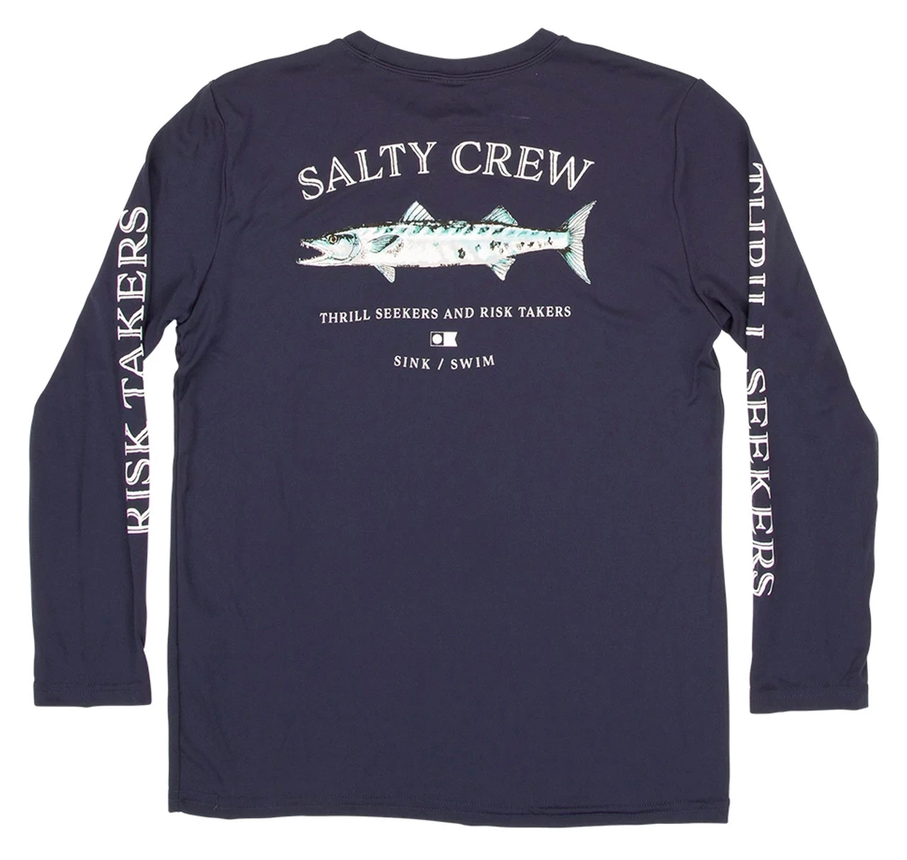 Salty Crew Slime Stick Long Sleeve T-shirts are technical shirts that help keep you cool and comfortable while on the water. These tech tees utilize performance moisture management fabric that is anti-microbial and made with 100% polyester material. They feature Salty Crew barracuda design across the back with logo graphics down the sleeves.