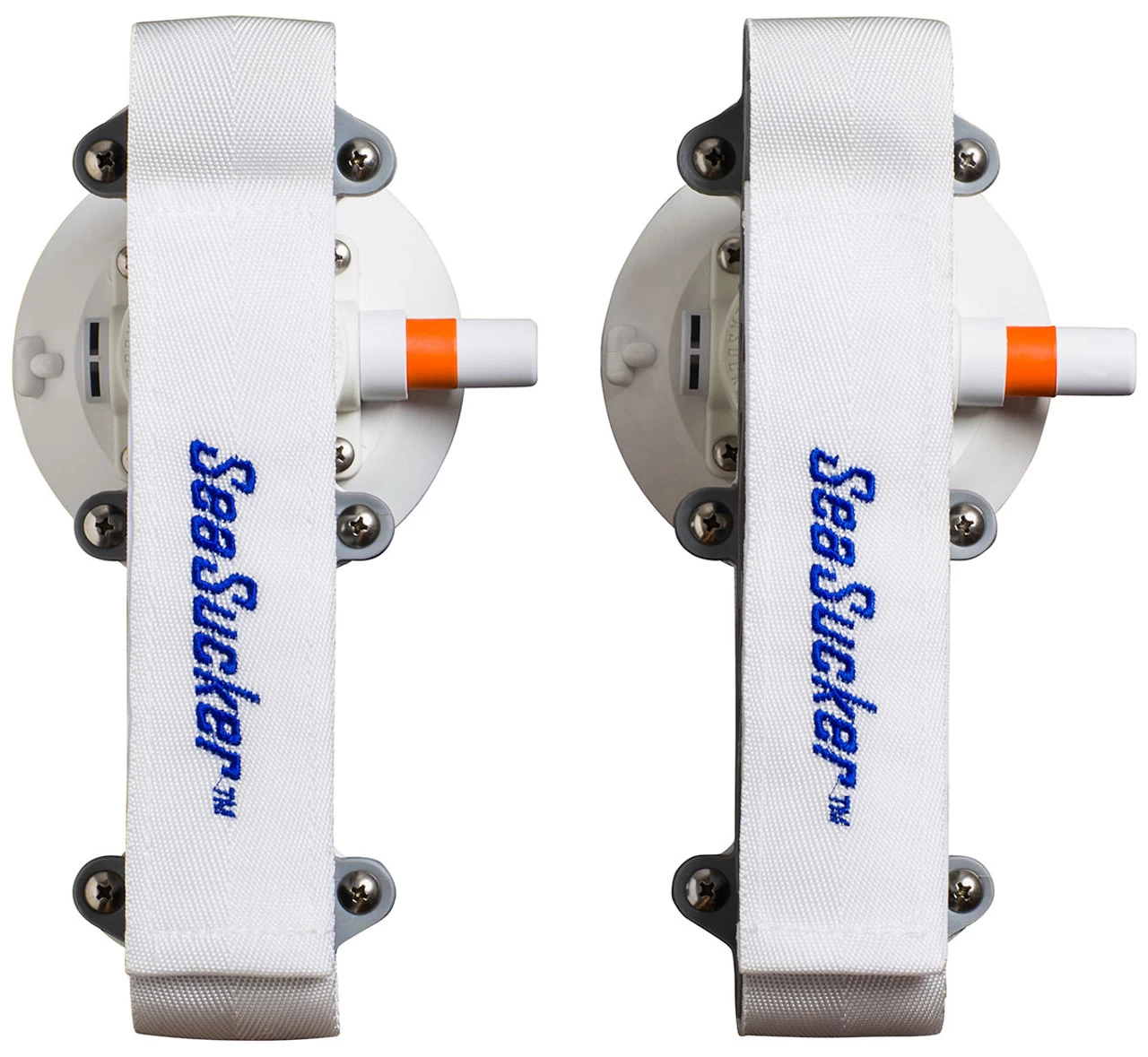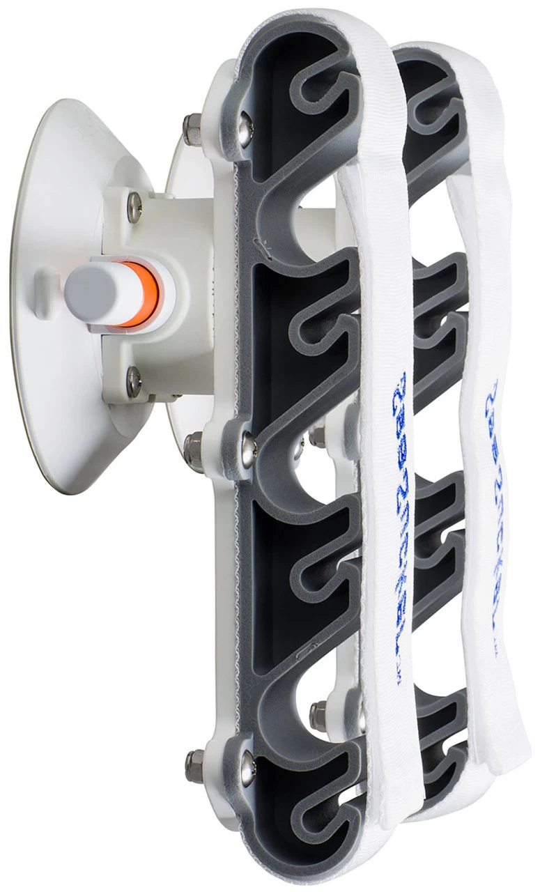 If you want more rod storage along your gunwales, this is the product for you. Instead of holding your rods straight up and down like all of our other rod holders, these hold them horizontally. The 4 1/2″ SeaSuckers mount them securely on your side walls, gunwalaes or even on the inside of your SUV. A rubber insert holds multiple rods criss-crossed between the units, topped off with a solid velcro-backed strap to keep everything in place. Sold in pairs.