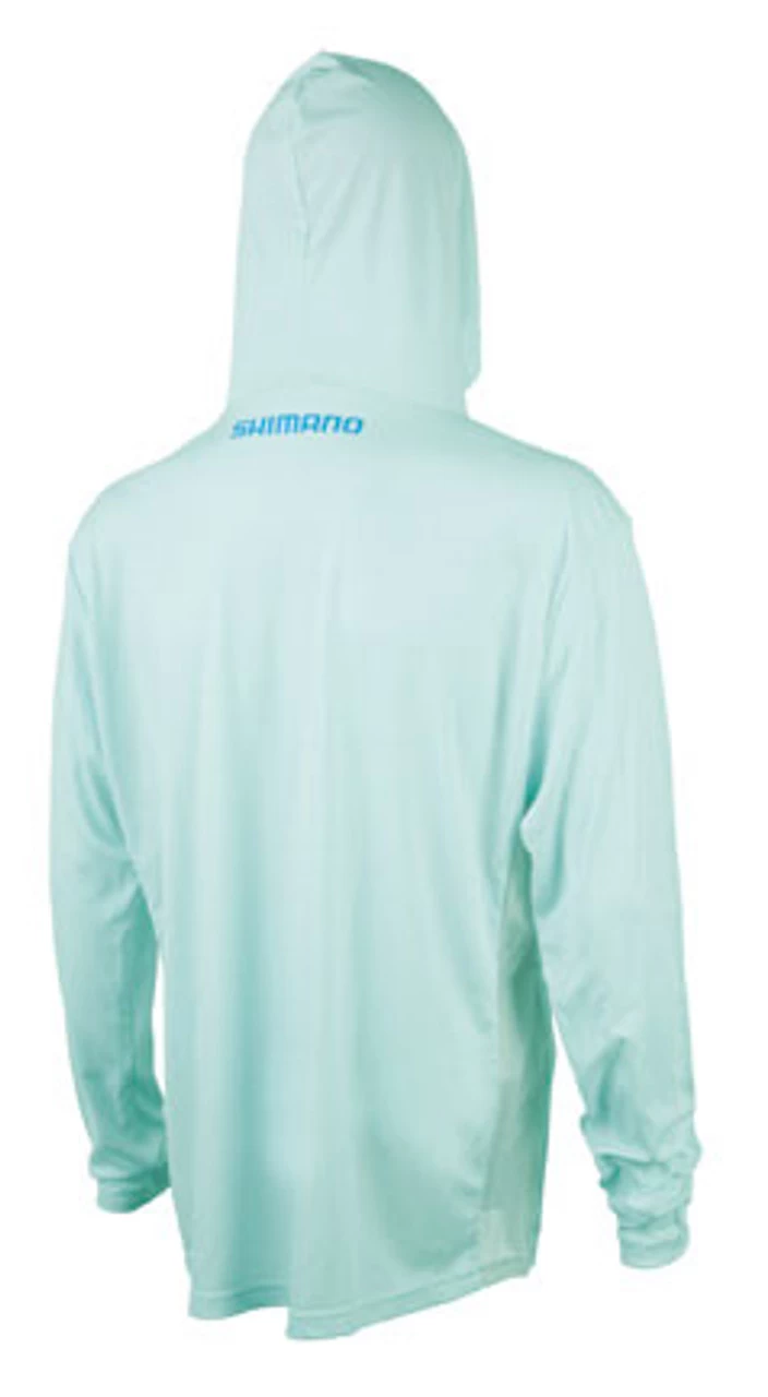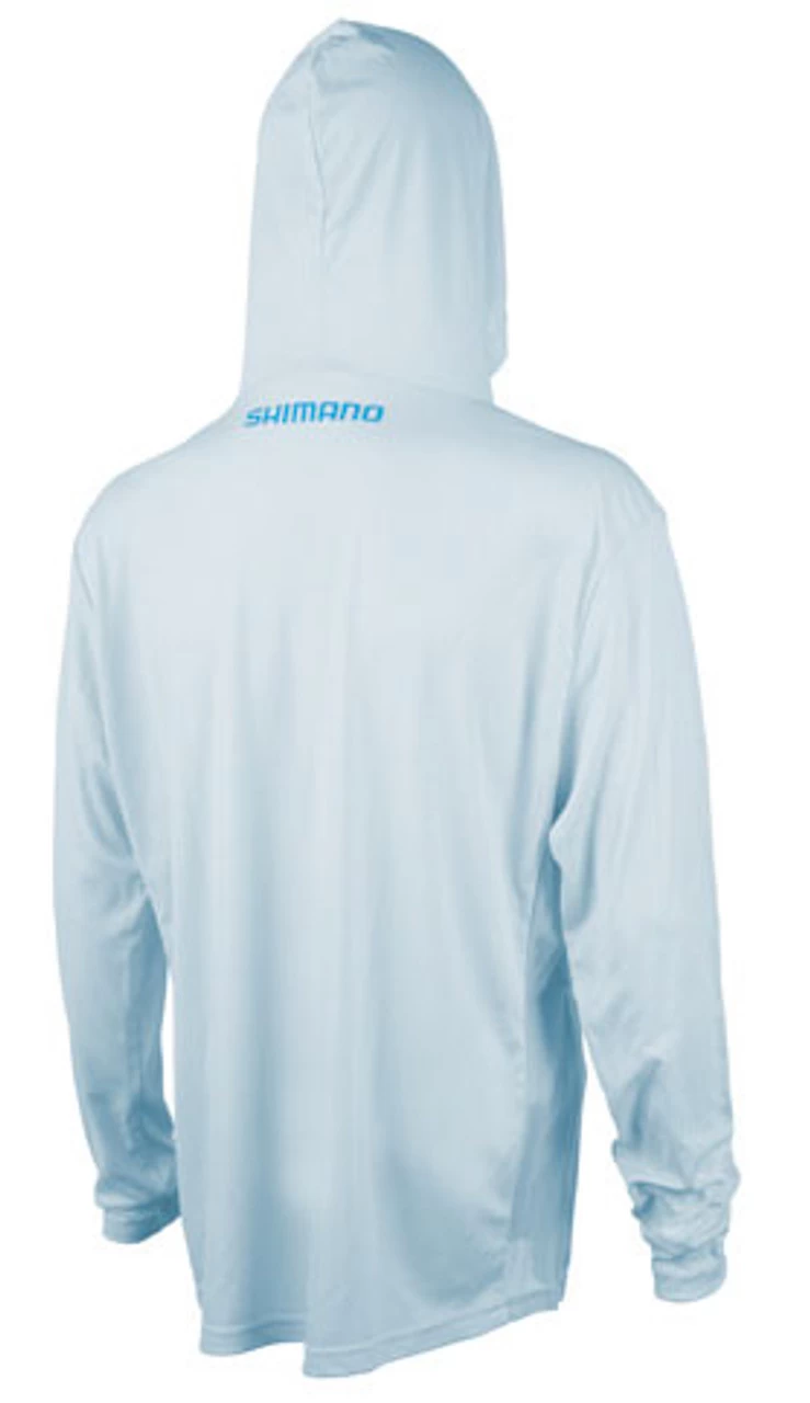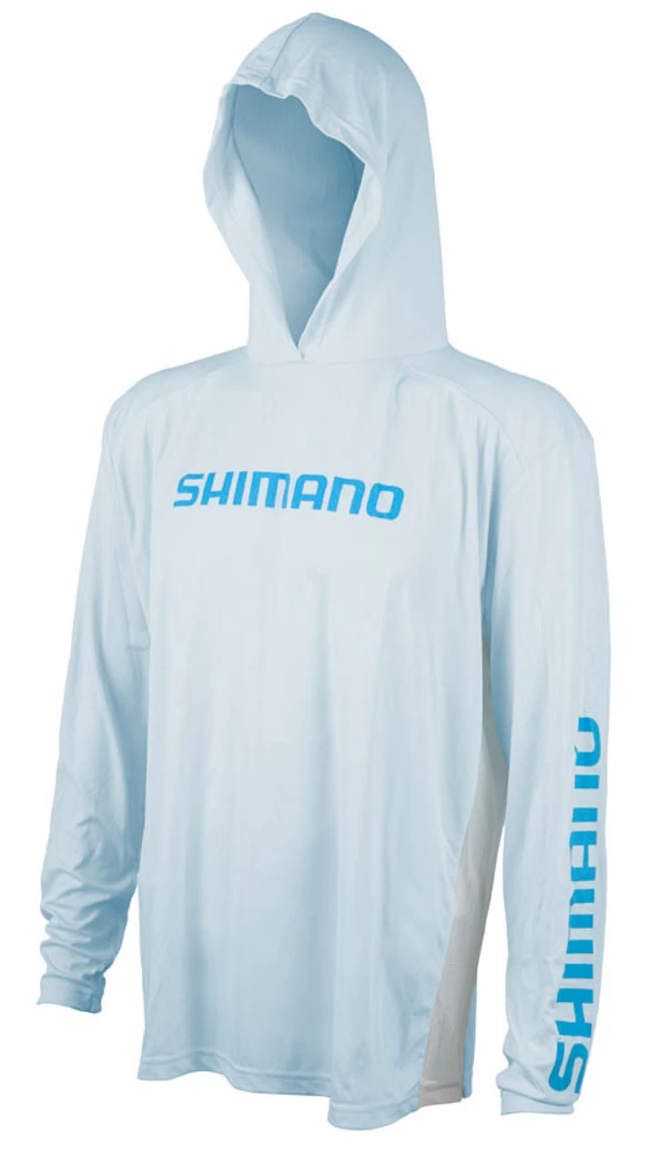 Shimano Long Sleeve Hooded Tech T-Shirts are made with 100% performance polyester material. They are lightweight and are super comfortable for long days of casting. Featuring mesh side panel for improved breathability and additional moisture wicking. The Shimano logo is on the center chest, back neck, and screenprinted on the left sleeve.