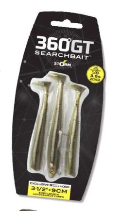 Storm 360GT Searchbait Minnow Lures are designed to be fished anywhere by all skill levels. These lures feature a rattling, weighted, life like jig head that matches the body perfectly for the most natural presentation possible. The toe-in boot tail design of these baits ensures the best action no matter the speed.