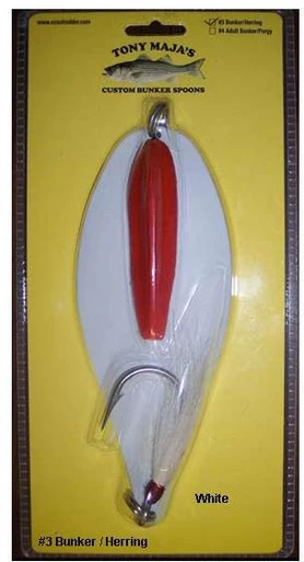 Tony Maja’s Bunker Spoons are ready to use right out of the package and have been designed for maximum success. The spoons are made of extra heavy gauge stainless steel which makes them work at a greater depth with less wire or line and with only one keel. The action of Tony Maja’s spoons have been designed to swim subtler than other spoons and the 9/0 stainless bucktail hook gives them a more life-like swimming action which increases the hook up ratio with virtually no foul hook-ups.