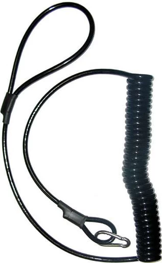 Tony Maja’s Trolling Safely Line features a rust proof stainless steel carabineer clip and a PU coated polypropylene rope that stretches to 12′.