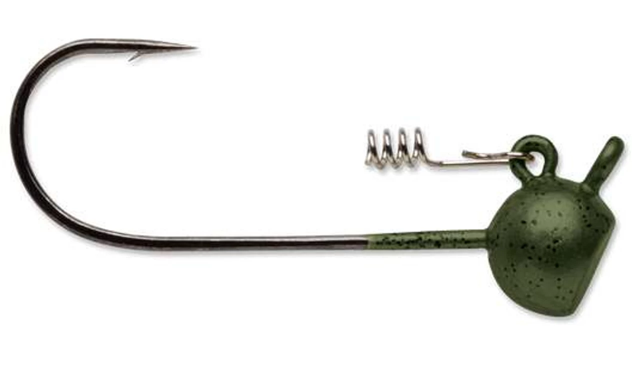 The VMC Stand-Up Shaky head jig is designed with a flat bottomed head that allows it to standup and rock enticingly on the bottom. This jig also features an easy-to-rig spiral locking spring to firmly secure your bait.