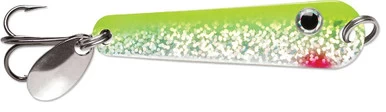 The VMC Tumbler Spoon is the ultimate lure for the open water or under the frozen tundra. The unique “knuckle” bend offers a slow tumbling action for those finicky biters or when a subtle action spoon is critical to matching the behavior of neutral to negative fish. The small metallic attractor blade adds additional flash and sound when coming in contact with the spoon and hook.