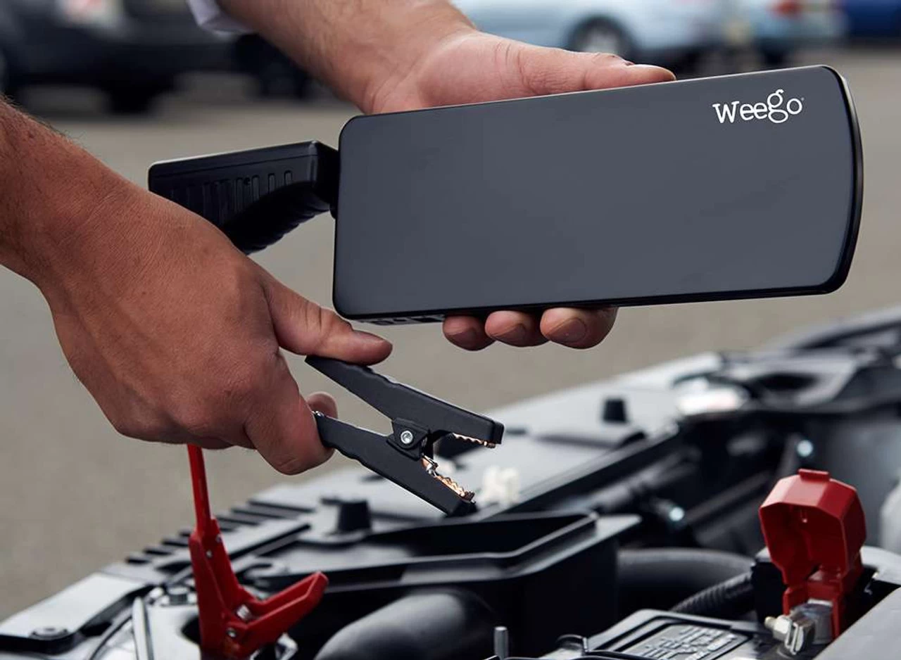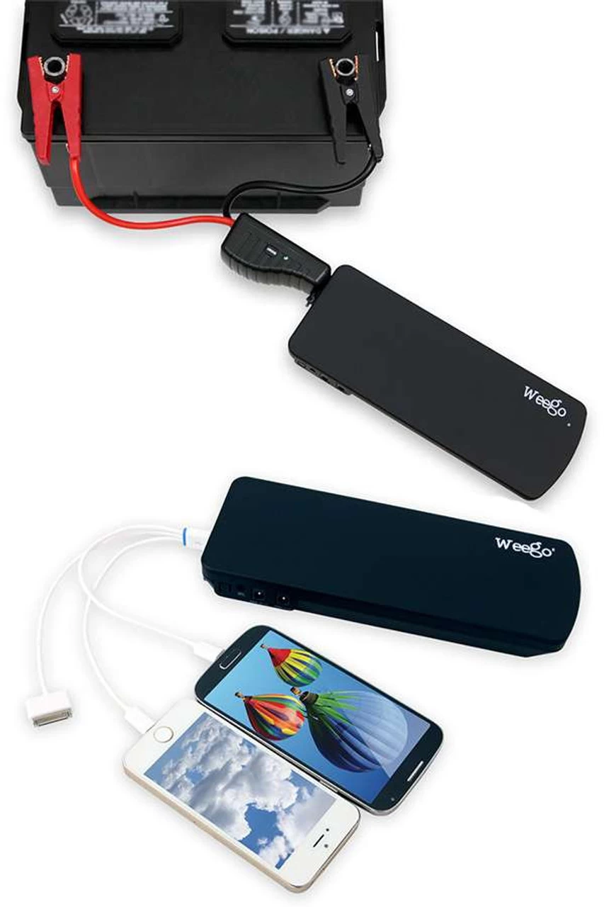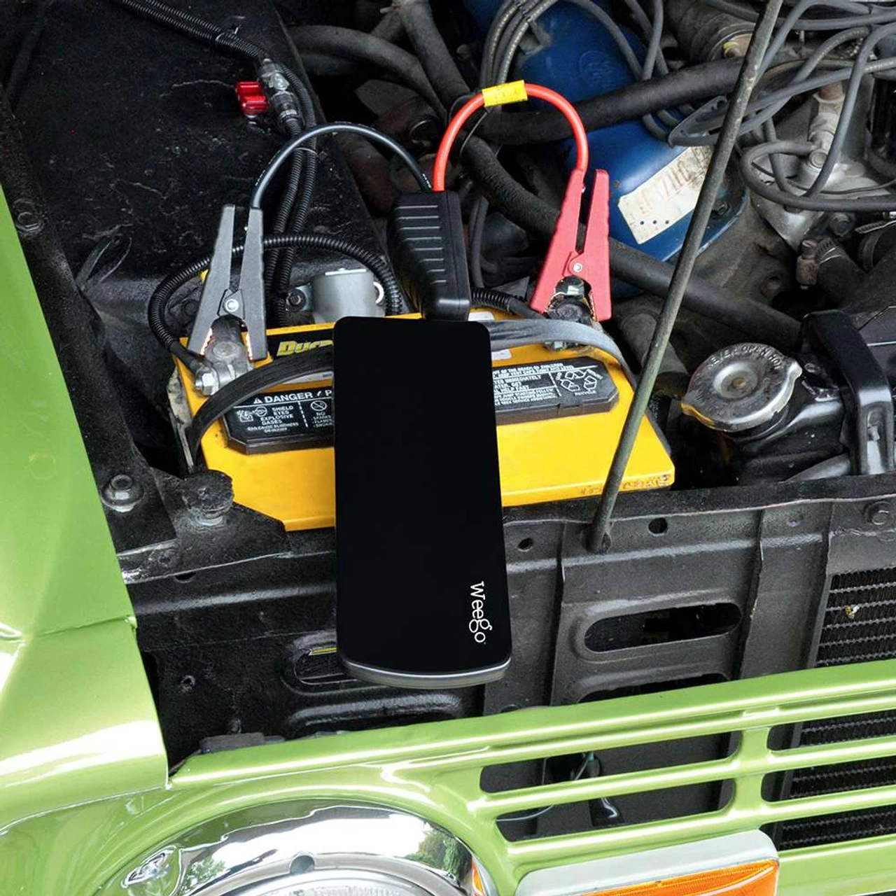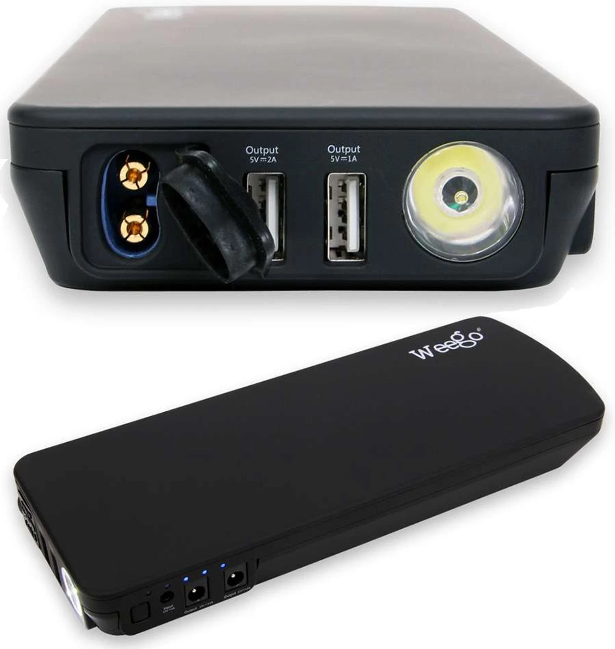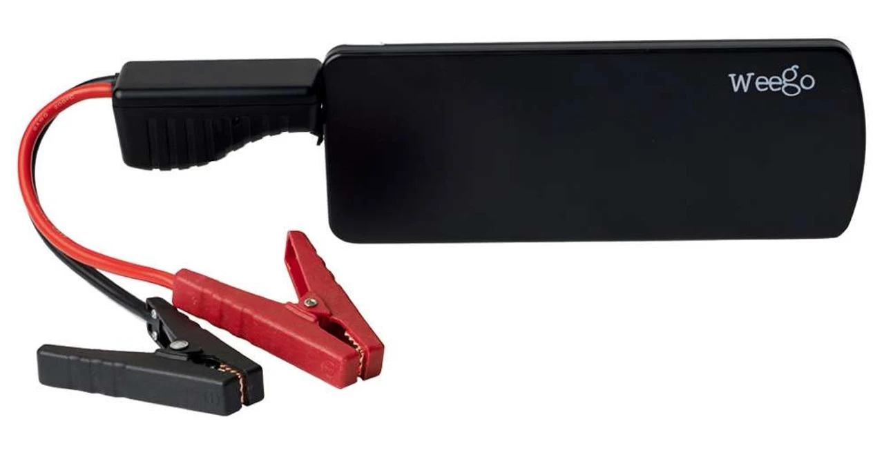The Weego Professional Jump Starter Battery+ eliminates the need for jumper cables, bulky jumper packs, or calling for a tow. This jump starter is made with 12v lithium-polymer that can start your engine, charge your tablet, phone or other USB devices. Small enough to fit in your glove box or even your pocket. This jump starter includes everything you need for jumping and charging. It features built-in circuitry protections along with additional protections fuse & diode in the jumper cables to ensure your safety. This jump start battery loses only 5% charge per month when stored. It works for ATVs, cars, trucks, boats and even motorcycles.