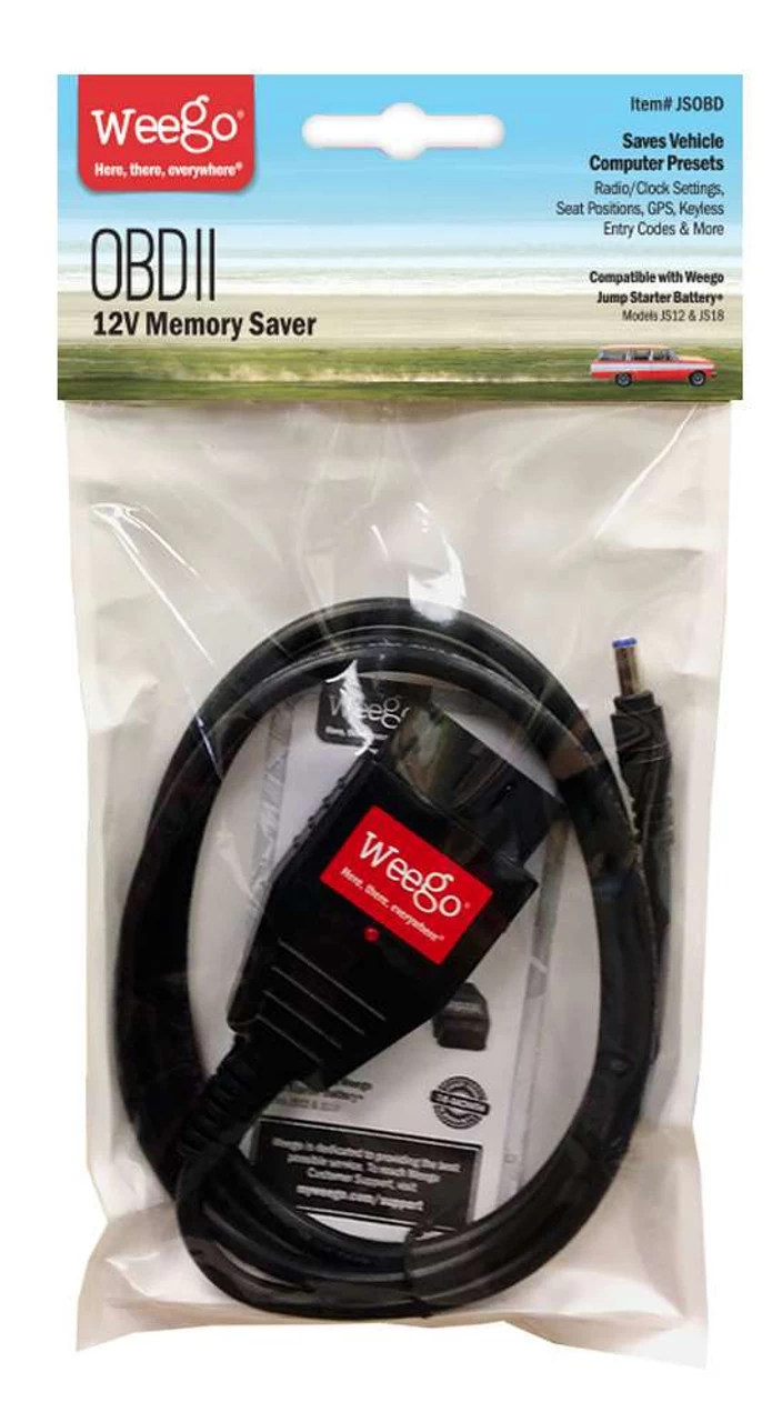 The Weego OBDII 12V Memory Saver enables you to disconnect your vehicle’s battery without losing electronic presets, such as radio/clock settings, seat positions, GPS and much more. It’s so simple to use. Just attach the memory saver to vehicle’s OBDII port, connect the other end of the memory saver cable to 12V/10A output in Weego Jump Starter Battery+, and power on Weego before disconnecting vehicle’s battery.